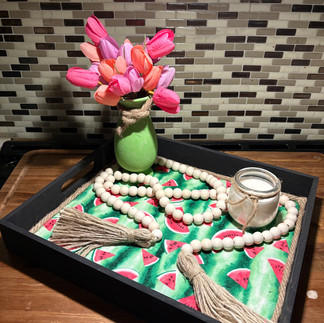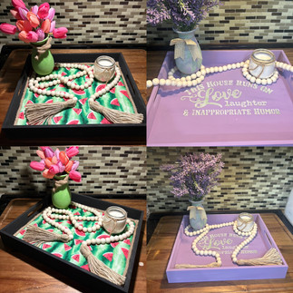 Create your unique set of crafts as Simply Sage; a tray, vase with florals, and a candle!